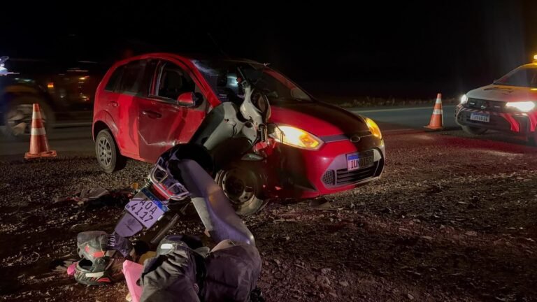 Casal fica ferido após colisão entre carro e moto na PR-483, em Francisco Beltrão