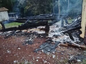 Em Dois Vizinhos, casa de madeira é destruída pelo fogo