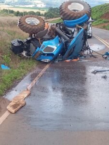 TRATOR CAI DE CIMA DE CAMINHÃO PRANCHA NA PR-566 ENTRE VISTA ALEGRE E ITAPEJARA D’OESTE