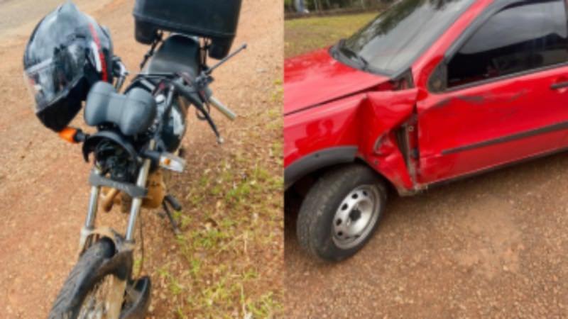 Condutor de motocicleta é socorrido após colisão com caminhonete na BR-180, em Marmeleiro