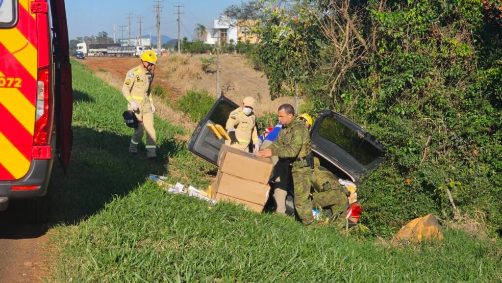 Veículo carregado com cigarros sai da pista durante perseguição na PR-483