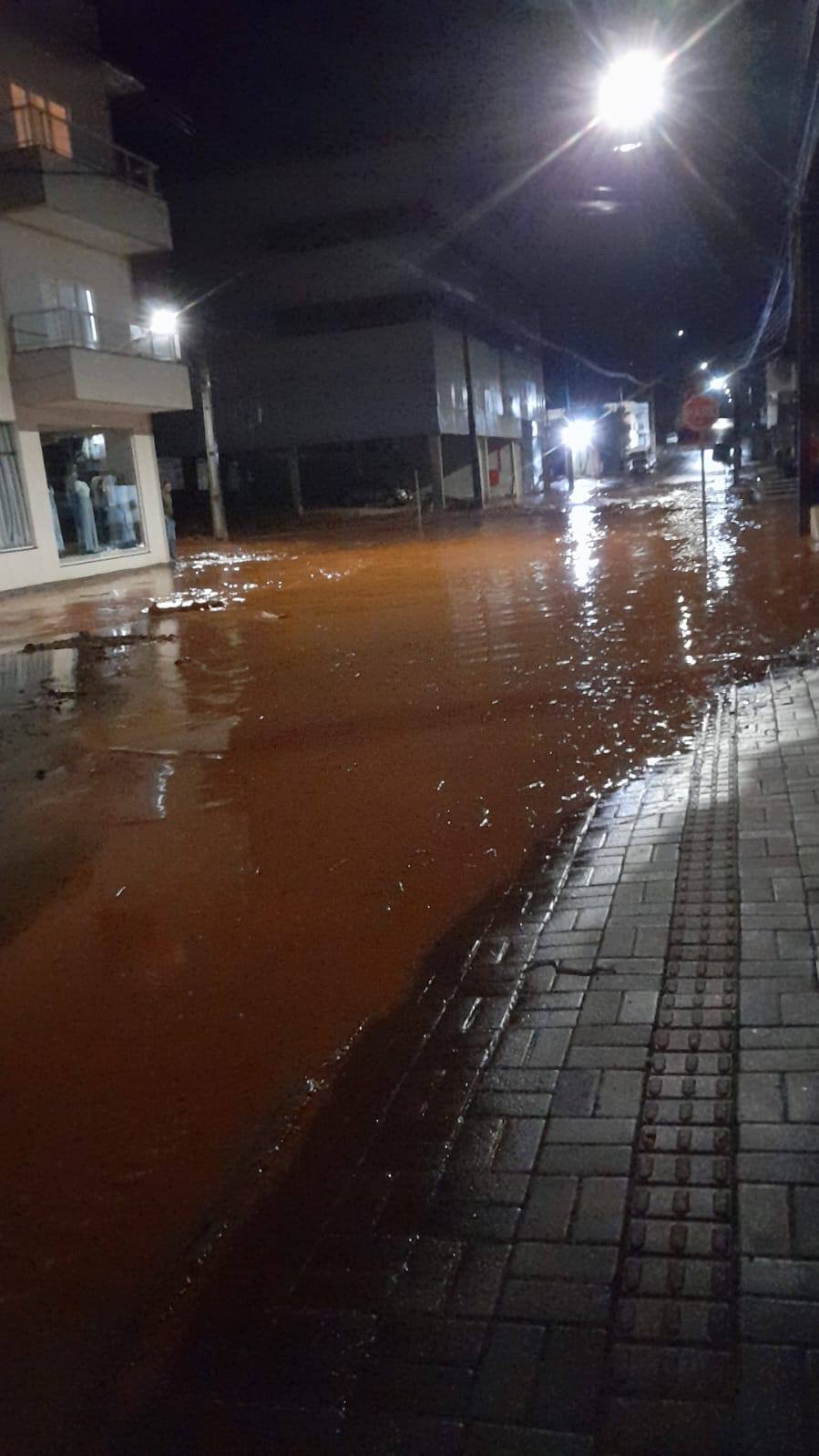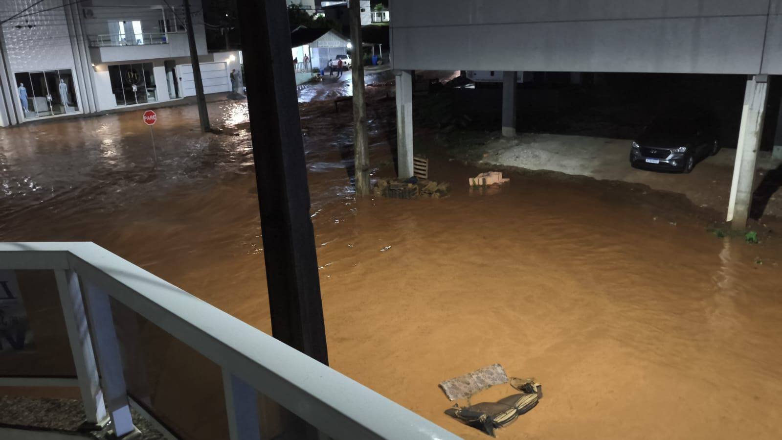 Na Rua Pioneiro Antônio Fabiane, próximo a APAE, vídeo de moradores também mostra a força da água.