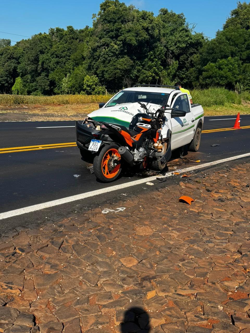 Com o forte impacto da batida, o motociclista foi arremessado a cerca de cinco metros de distância, não resistiu aos ferimentos e entrou em óbito no local. A vítima é um homem de 45 anos, morador de Pato Branco.