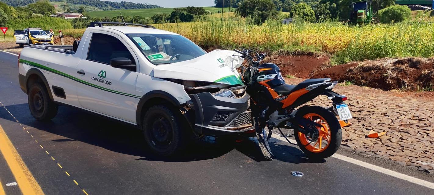 De acordo com as informações apuradas, um motociclista conduzia uma Honda Twister 250 cilindradas, seguia no sentido Pato Branco, quando acabou colidindo com um veículo Saveiro, que trafegava em direção contrária.