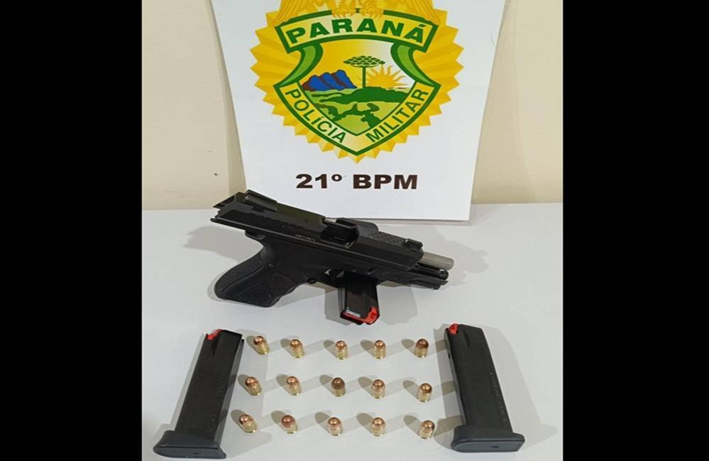 A equipe policial se deslocou até o referido local indicado e encontrou a arma, se tratando de uma pistola da marca Taurus TH-380, a qual estava alimentada com 15 munições intactas. Em continuidade com a ocorrência, os policiais foram até a casa do suspeito onde também foram apreendidos mais dois carregadores da mesma arma.