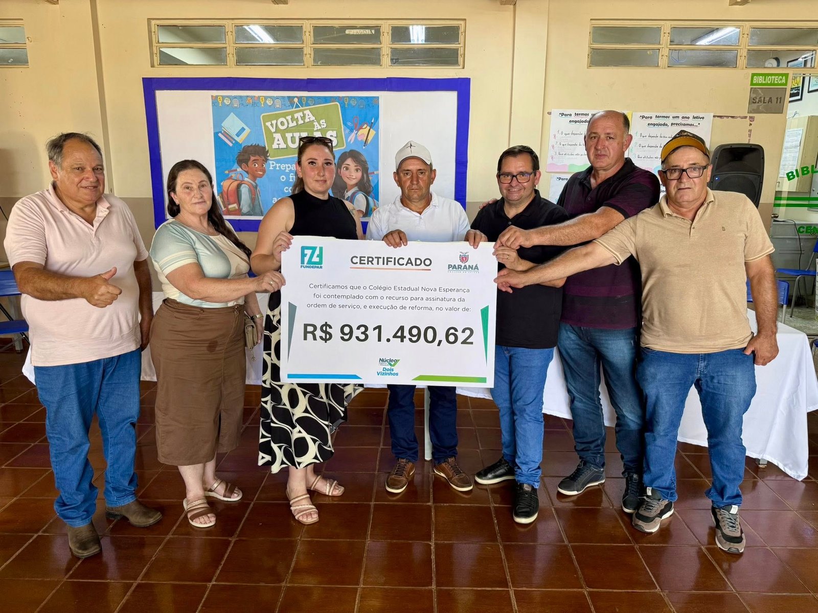 Na tarde desta sexta-feira (06) foi realizada, em Nova Esperança do Sudoeste, a assinatura da ordem de serviço para a reforma do Colégio Estadual Nova Esperança, um passo importante para o fortalecimento da educação pública no município.