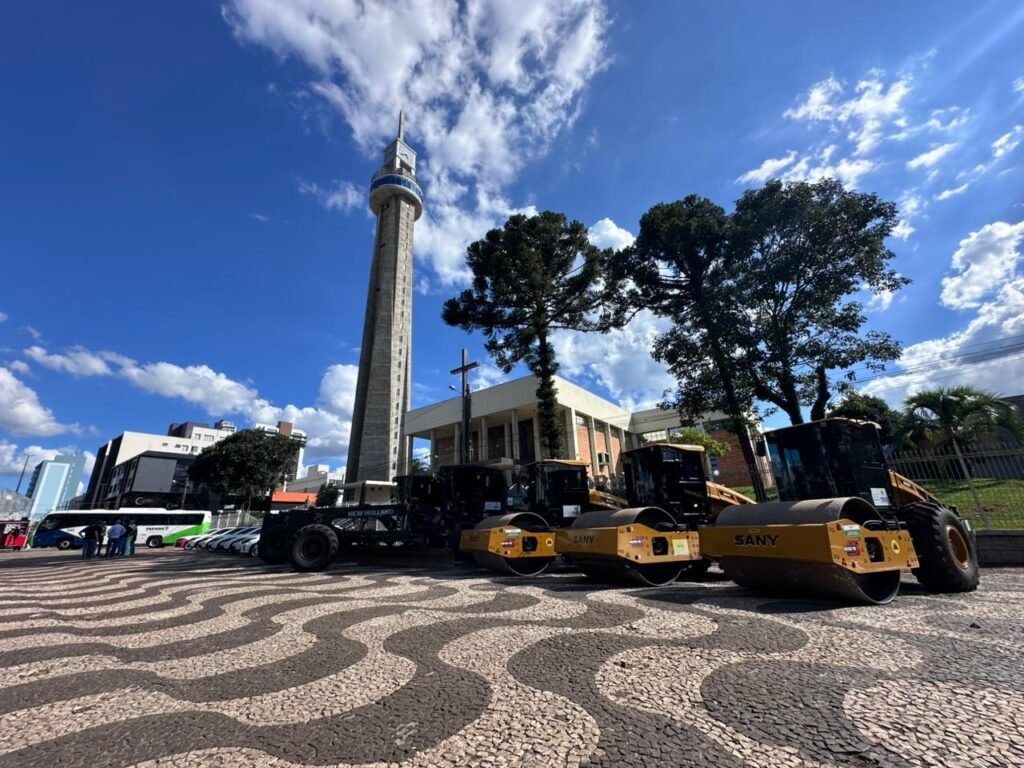 Esses equipamentos exclusivos reforçam a capacidade técnica da prefeitura em contar com maquinário moderno e robusto para obras de terraplanagem e manutenção de vias rurais e urbanas. A exposição também conta com três rolos de compactação para pavimentação e conservação de estradas e espaços públicos.
