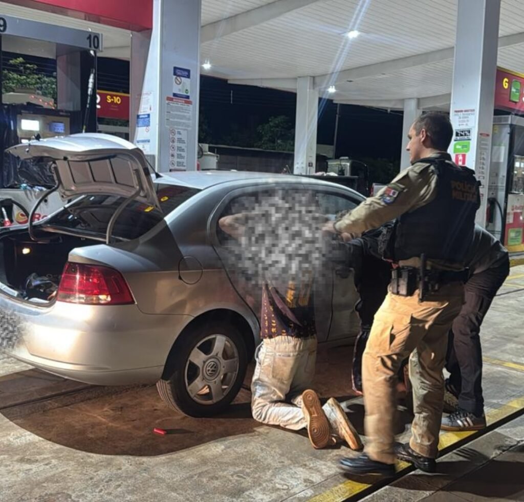 Durante a abordagem, o condutor confessou ter participado do roubo do carro e declarou que outro indivíduo não localizado no momento também integrou a ação, utilizando uma arma branca. No veículo estavam ainda dois passageiros.