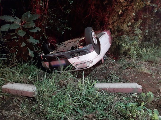 Carro capota na Avenida Bispo Dom Agostinho José Sartori
